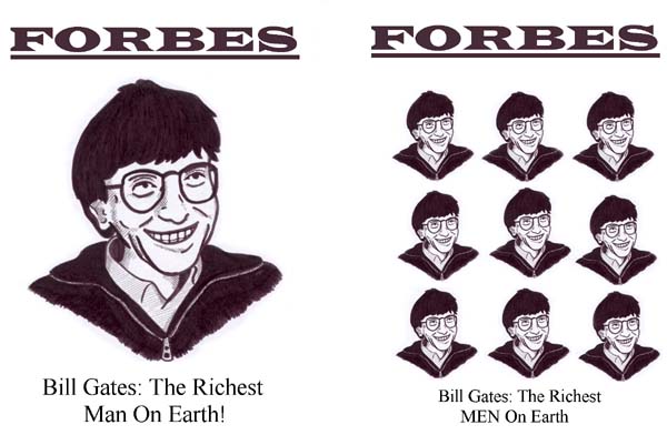 We all know that Americans love to make money, and the best way to do that is when you fool people into not really thinking who is getting the money that they shell out for their silly consumer products. For more information on this topic write to Bill Gates, but keep in mind he'll suck your brain right out of your right ear if you let him. Also keep in mind that he'll ask you to buy his Internet Explorer 4.0, which by the rights of all that is holy and good, should never have been allowed to be produced. None the less, we must remember what people back in the seventies called him... "Hey you! Nerd-face!".